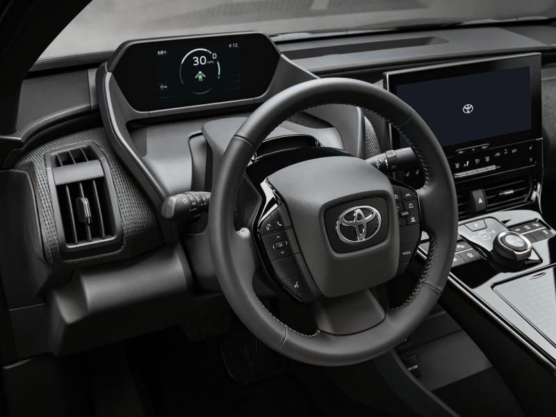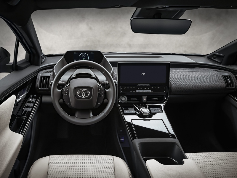 ภายในห้องโดยสารของ Toyota bZ4X มีการออกแบบแผงคอนโซลและจัดวางอุปกรณ์ต่างๆ เพื่อลดการบดบัง